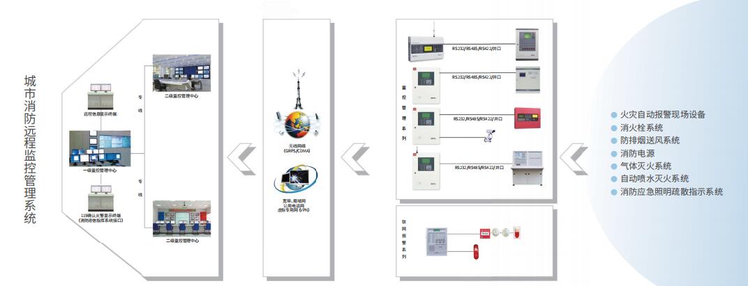 當聯網用戶發生火災時,聯網設備會在20秒內將用戶的火警信息傳至接警管理中心,供接警人員進行火警分析、確認、協助處理。